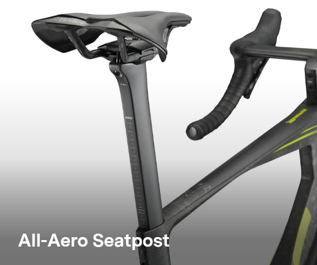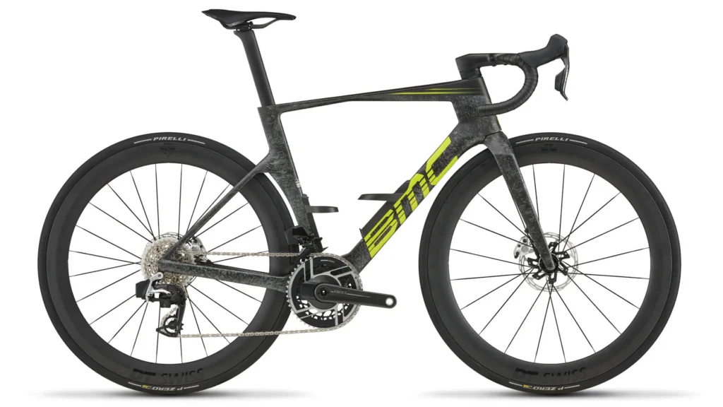 The frame features a deeper bottom bracket than BMC produces ever before. To make sure the surface area provides the cleanest air. The all-aero seat post is slimmer and lighter. The SRAM Red AXS drivetrain and DT-Swiss ARC 1100 DICUT complete the package.