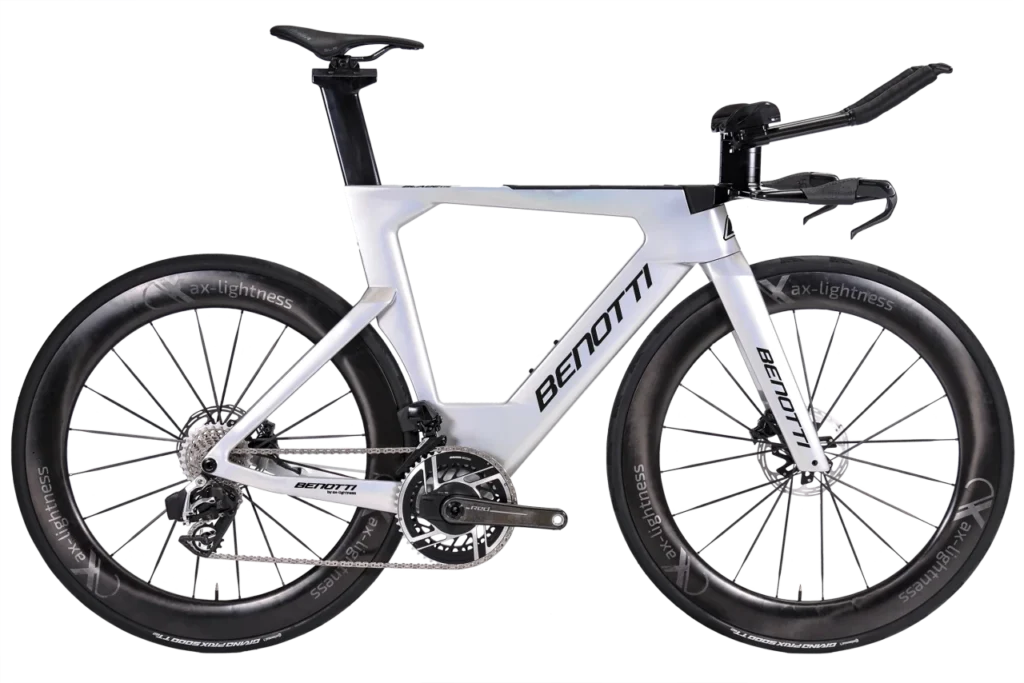 – Specially designed carbon wheels from ax-lightness (SELECTION 80C, ULTRA 65C Disc Ceramic, ULTRA 80C, Disc Wheel 1.1 Ceramic).