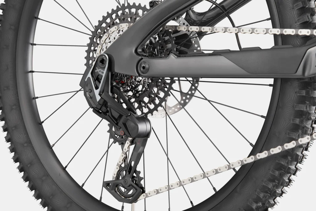 Drivetrain: SRAM XO Eagle AXS, T-Type, 12-speed, Eagle 90 crank (30t), GX Eagle cassette (10-52t)