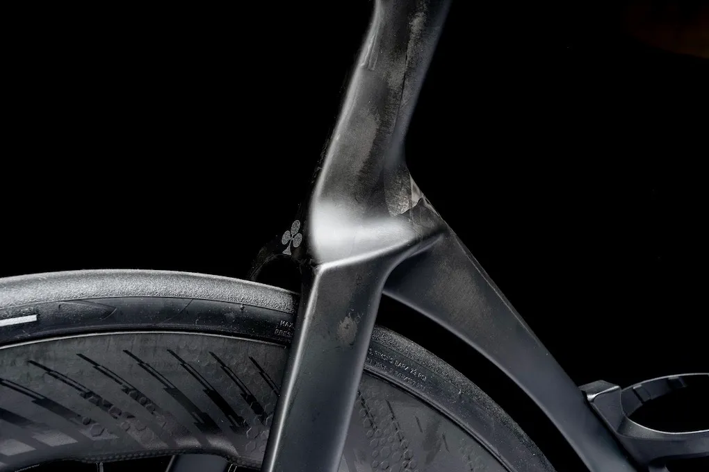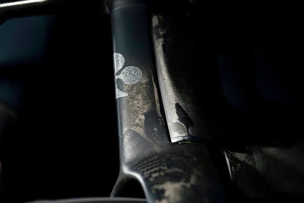 The Dark livery is designed to let the carbon fiber texture of the bike excel. The raw-carbon treatment gives the bike a pure racing look. Just like the bike Tadej Pagacar used during the Tour de France in 2025.