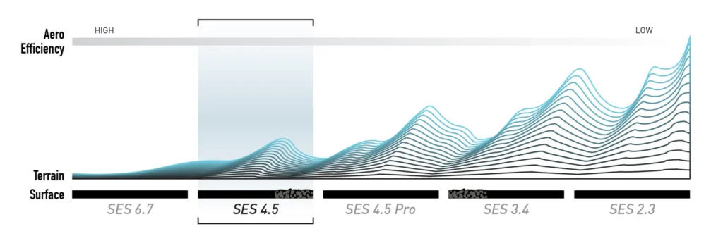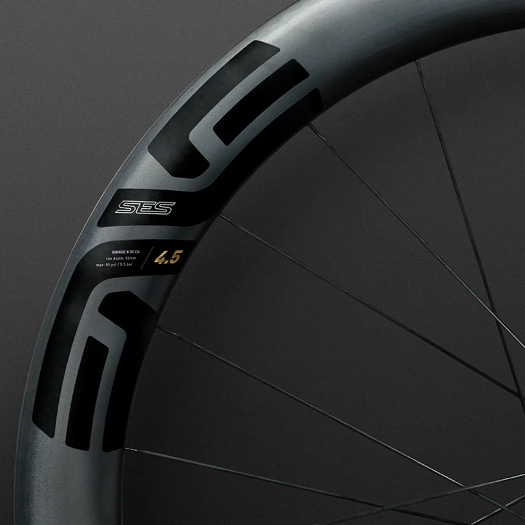 The ENVE SES 4.5 wheelset has been redesigned to reduce weight and increase its aerodynamic efficiency. The wheels have been specially developed for use over flat and hilly terrain. The redesign gives the new SES 4.5 more versatility through pinch-flat resistance and a weight reduction without compromising on speed.