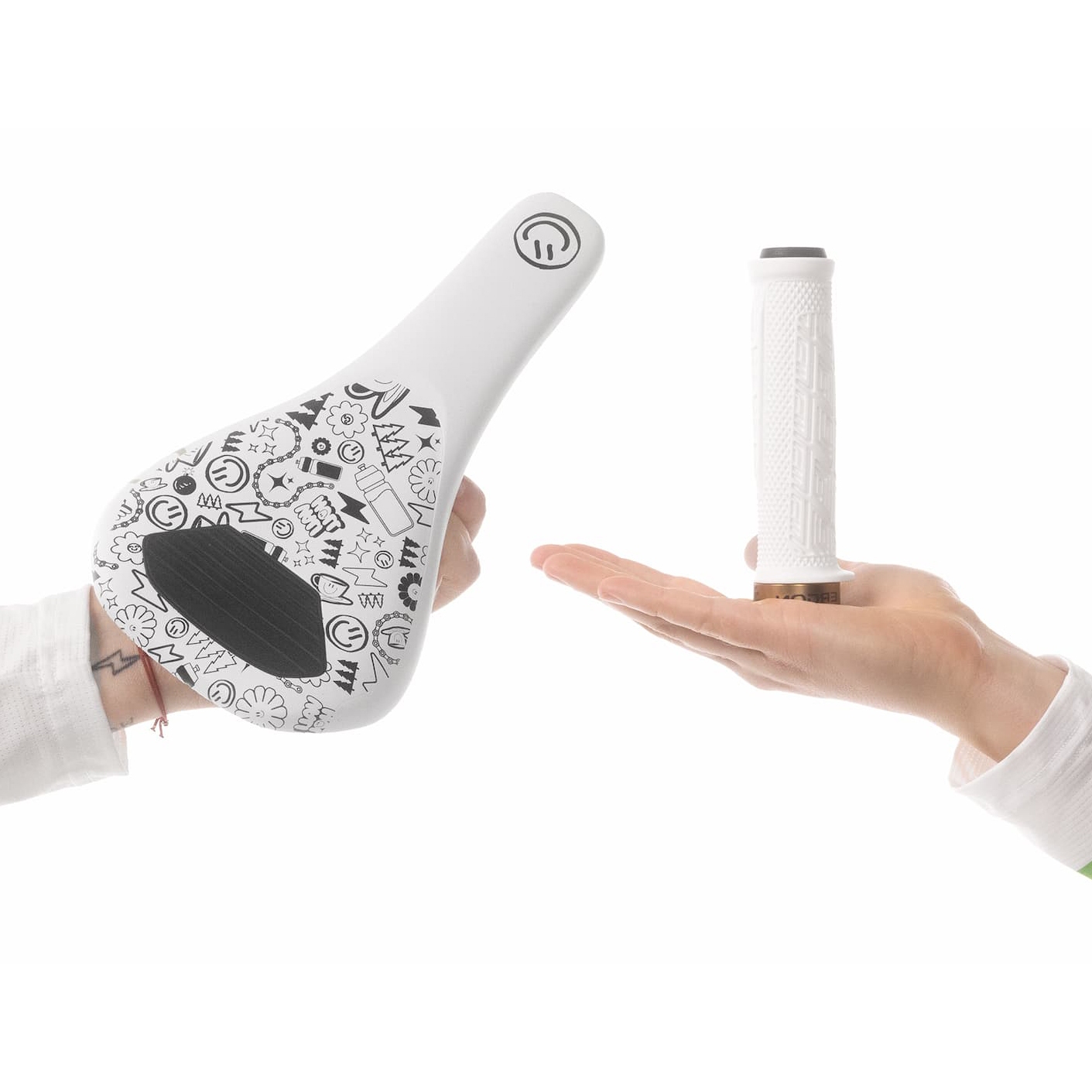 The Ergon SM Downhill Comp is now available in Vali Höll’s special edition. The cool design includes symbols and pictograms representing speed, cycling, nature and her Austrian roots. With a prominent role for Vali’s own smiley, typical for her positive attitude in life and of course, on the downhill tracks. As the women’s downhill dominator.