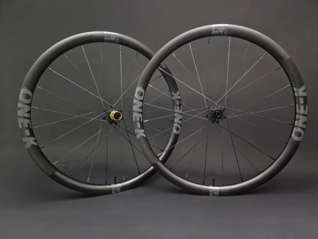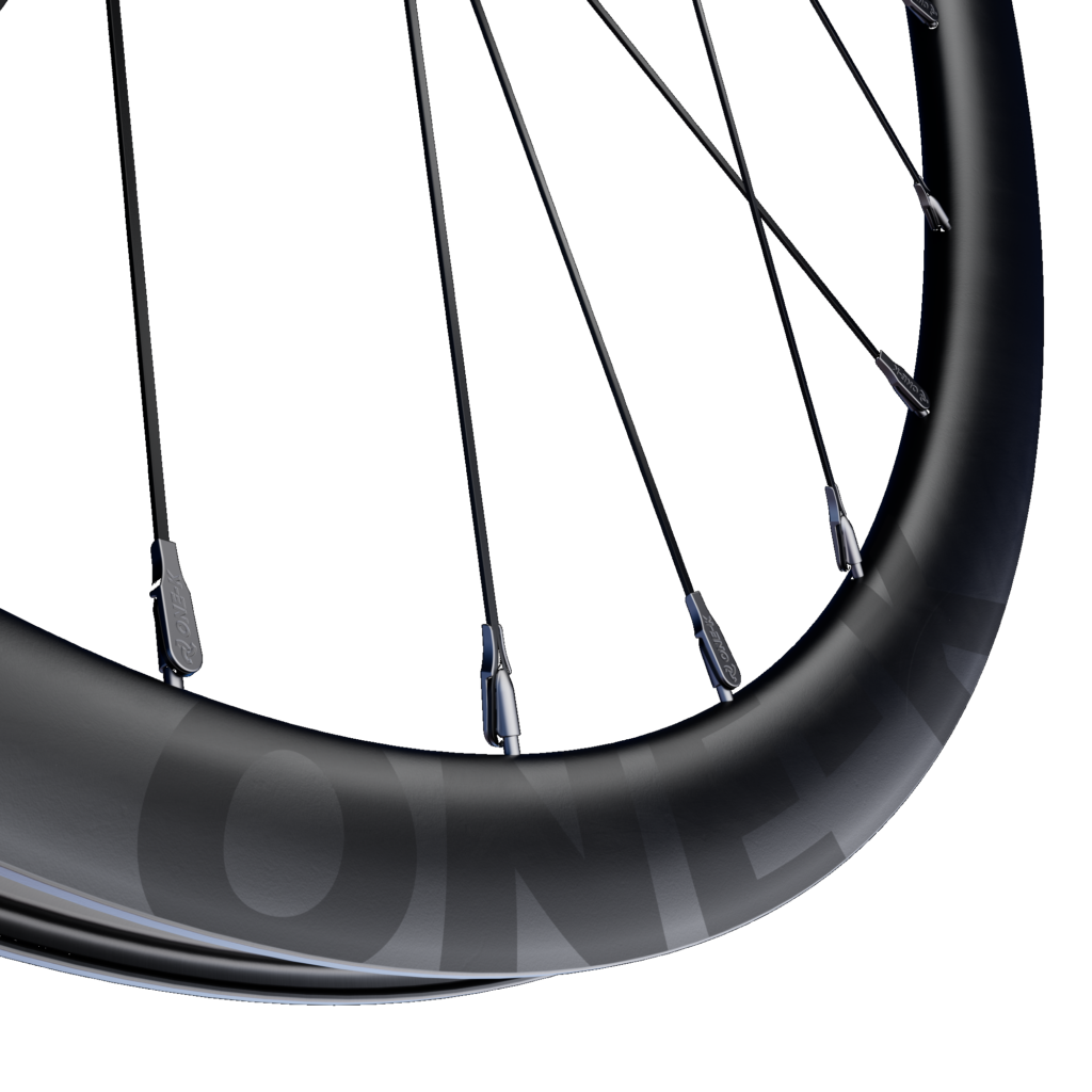 The RD-PRO uses NON+ Components hubs and is available with bodies for Shimano (HG), SRAM (XDR) and Campagnolo. Each wheel has 24 spokes, made from ONE-K’s proprietary carbon fiber material. Each spoke weighs about 2 grams. The titanium spoke nipples feature a Diamond-Like-Carbon (DLC) coating, intended for extra wear resistance and a dark finish. The RD-PRO comes with tubeless tape, valves and wheel bags.