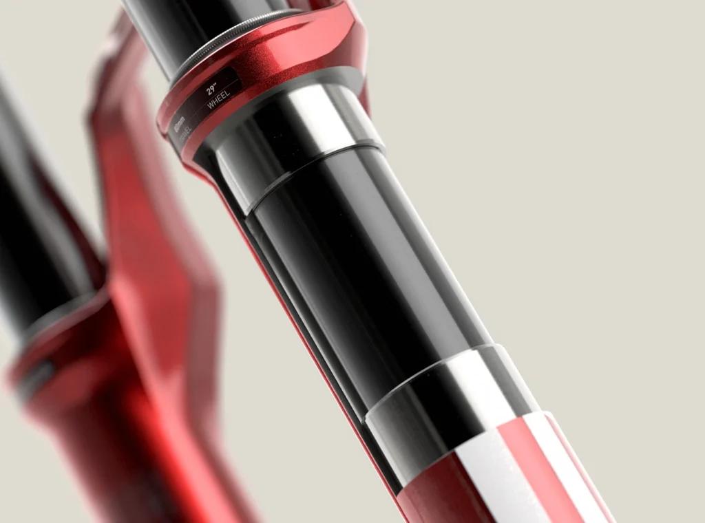 Specifications: material fork crown/stem: aluminium/aluminium, material stanchions: aluminium, 35 mm tapered wall, black anodized (Fast Black), material down tubes: magnesium, axle standard: 15 x 110 mm, steerer tube: tapered 1.5″ to 1 1/8″, outer diameter fork crown: 58 mm, suspension travel: 120 mm, air spring: DebonAir+, adjustment of the spring characteristic: yes, via bottomless tokens (max. 3 permitted, 0 installed), damping: Charger Race Day 2, externally adjustable rebound, low-speed compression damping, lockout: remote, brake mount: postmount (180 mm, max 220 mm), maximum tire diameter: 758 mm, max. tire width: 66 mm, max. system weight: 150 kg, offset: 44 mm, colour Electric Red (Casting)