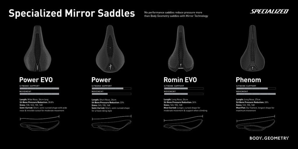 Specialized relies on the ergonomic Body Geometry principles since it’s debut in 1997. Based on these principles, the product developers claim that the new S-Works Power EVO saddle with Mirror technology provides 28.8% less pressure on your sit bones and 34.1% less on the nose of the saddle. The biggest fan of the new saddle is Belgian rider Remco Evenepoel, which says enough about the high standards.