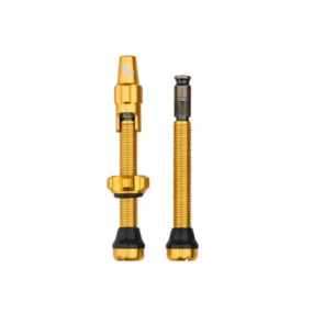Customize your bike with this valve kit by Wolf Tooth. Pick for instance the golden coloured version to match with your wheels or frame. Or one of the other nine (!) colours. It is equipped with Schwalbe’s Clik valve cores, an alternative to Presta valves for tubeless tires. The Clik